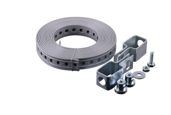Attachment set for water or gas tanks for reliable installation of underfloor tanks. Pre-assembly outside the vehicle possible. All necessary parts are included in the set.