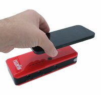Lithium Polymer Akku (LiPo) - Induktives Laden (Qi Wireless) von Handy, etc. - Tragbarer, ultrakompakter 12 V-Lithium-Notstarter in Multifunktionsausführung. Max. Startstrom 1’500 A. - Ausgestattet mit äusserst leistungsstarken Batterien. Schnelles und vollständiges Laden durch die hoch effizienten Lithiumpolymerzellen LiPo. - Intelligentes und schnelles Aufladen der elektronischen Geräte über USB (USB-C mit Power Delivery, USB-A mit Quick Charge) und kabellos. - Leistungsstarke Lichtquelle. 2 sehr starke LED-Leuchten und 4 Betriebsarten. Leichte und kompakte Bauform. 1 Jahr Garantie Booster 12 V, 1’500 A Startstrom, 12’000 mAh