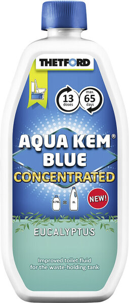 Aqua Kem Blue Concentrated Eucalyptus ist eines der neuesten Mitglieder der bekannten Concentrated-Familie von Thetford! Aqua Kem Blue Concentrated Eucalyptus hinterlässt einen Duft von Wellness in Ihrem Wohnmobil! Klein und leistungsstark! Eine leistungsstarke, sehr wirksame, zweieinhalbfach konzentrierte Sanitärflüssigkeit für den Fäkalientank von Cassetten- und tragbaren Toiletten.