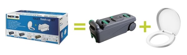 Gebrauchte Reisemobile/Wohnwagen sind nicht immer in einem tadellosen Zustand, durch das Angebot von Thetford, haben sie auf einfache und günstige Weise eine "neue" Toilette. Mit dem Fresh-up Set erhalten alte Toiletten wieder einen neuen Glanz. Dieses Angebot kann auch Besitzer von Reisemobilen/Wohnwagen die über die Anschaffung eines neuen Tanks nachdenken, dazu bewegen, das Fresh-up Set zu kaufen. Das spezielle Angebot beinhaltet: Sitz & Deckel und einen Fäkalientank. Das Thetford C400 Fresh-up Set kann leicht eingestellt werden, sodass es sowohl für eine linke als auch für eine rechte Toilette geeignet ist! Dies ist möglich, indem man den Tankmechanismus vor dem Zusammenbau abschraubt und um eine halbe Umdrehung dreht.