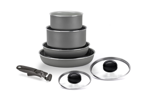 Weitere Spezifikationen:Maße Stieltopf A: Ø 16 cm / 1,4 lMaße Stieltopf B: Ø 20 cm / 2,8 lMaße Bratpfanne A: Ø 24 cmMaße Bratpfanne B: Ø 28 cmMaße Glasdeckel A: Ø 16 cmMaße Glasdeckel B: Ø 20 cm