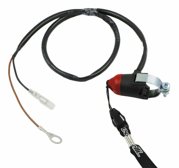 Schalterform: Zugschalter Funktion mechanisch: tastend Funktion elektrisch: Schliesser Belastbarkeit: 3 Ampère Beleuchtung: Nein Wasserdicht: Nein Zusatzinformation: - mit Reissleine - ø 19-24mm, Kabellänge: 600mm - Notausschalter aus Kunststoff mit Metallbriede. Dieser Schalter kann am Lenker montiert werden. Ausgelöst wird über ein Gummiband das am Handgelenk fixiert wird. Schutzart IP53 12 V 3 A, Schliesser, mit Reissleine