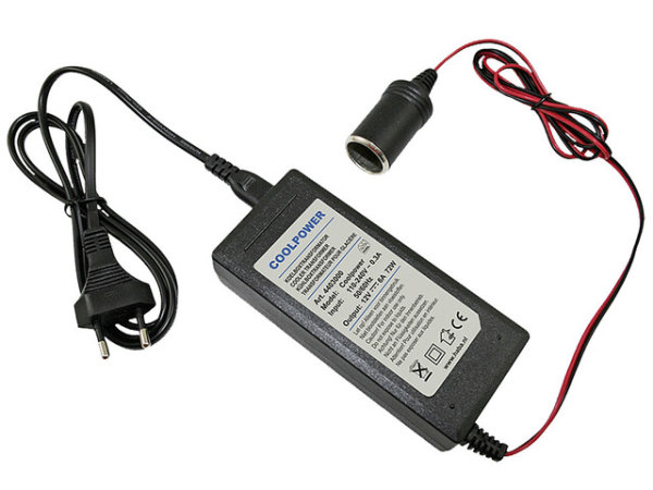 Transformateur avec prise DIN 21 mm pour fiche allume-cigare 12 m, 230 V, 72 W 12 V.