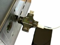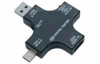 USB Power Tester – Zuverlässige Überwachung von Strom und Spannung Mit diesem kompakten USB Power Tester messen Sie schnell und präzise alle relevanten Parameter beim Laden von Smartphones, Tablets, Powerbanks und anderen USB-Geräten. Das übersichtliche grafische Display liefert Echtzeitinformationen zu Spannung, Stromstärke, Leistung, Kapazität und Ladezeit, damit Sie die Effizienz Ihres Ladevorgangs jederzeit im Blick behalten. Vorteile: • Breiter Messbereich: Spannungen von 3.80 V bis 32.0 V und Ströme bis zu 5.1 A • Echtzeitüberwachung: Kontinuierliche Anzeige aller wichtigen Ladeparameter für eine sichere und zuverlässige Stromversorgung • Einfache Handhabung: Einfach in die USB-Verbindung einschleifen, die Messung startet sofort • Praktische Reset-Funktionen: Mit nur einem Knopfdruck lassen sich aufgezeichnete Werte wie mAh, Wh oder Gesamtzeit zurücksetzen • Vielfältige Einsatzmöglichkeiten: Ideal zum Testen von Ladegeräten, Kabeln, USB-Steckern und Powerbanks Anwendungsbereiche: • Überprüfung von Ladegeräten, USB-Adaptern und Netzteilen • Messung von Kabelverlusten, um die Kabelqualität zu beurteilen • Analyse der Ladegeschwindigkeit von Smartphones, Tablets und Powerbanks • Ermittlung der tatsächlichen Akkukapazität und Ladeeffizienz Lieferumfang: • USB Power Tester • Kurzanleitung • Adapter für Micro USB Technische Daten: • Spannungsmessbereich: 3.80 V bis 32.0 V • Strommessbereich: 0 bis 5.1 A • Leistungsanzeige: bis zu 160 W • Kapazitätsmessung (mAh): 0 bis 99999 mAh • Energieanzeige (Wh): 0 bis 9999 Wh • Zeitmessung: bis zu 99 Stunden 59 Minuten • Abtastrate: alle 500 ms • Betriebstemperatur: 10 °C bis 60 °C • Abmessungen: ca. 84 x 24 x 15 mm Anschlussmöglichkeiten: • USB-A Eingang und Ausgang zur einfachen Durchgangsmessung • USB-C Port (je nach Modell) zur Messung von Geräten mit USB-C Schnittstelle • Mitgelieferter Micro USB Adapter für ältere Geräte • Kompatibel mit den meisten USB-Adaptern, Ladegeräten und Powerbanks Optimieren Sie Ihre Ladevorgänge, überprüfen Sie die Effizienz Ihrer Geräte und stellen Sie sicher, dass Ihre mobilen Begleiter zuverlässig und sicher mit Energie versorgt werden. zeigt die Spannung, Strom und Leistung von USB-Steckdosen