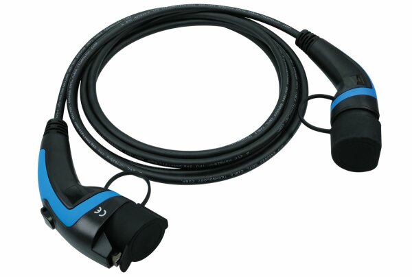 Übergangs-Ladekabel für Elektro-Fahrzeuge mit Typ 1 Steckdose um an festinstallierten Ladestationen (Mode 3) mit Typ 2 Steckdosen (IEC 62196) zu laden. Sehr robustes, flammwidriges PUR Glattkabel mit geschraubten Typ 2-Stecker und Typ 1-Kupplung. Die Ladung erfolgt 1-phasig (230 V). Geeignet um Ihr Fahrzeug mit Typ 1 Stecker an Ladestationen mit Typ 2 Stecker zu laden. für Mode 3 Ladestationen Typ 2 --> Typ 1 gerade