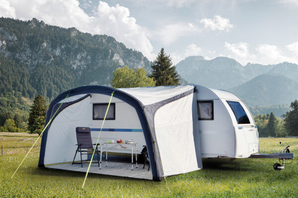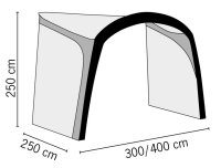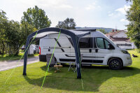 The sun sail is available in 2 different widths and can be set up and taken down quickly and easily thanks to just one air hose. With an installation height of 235-250cm and a Ø7mm piping, it is perfect for caravans, but can also be used for vans. We recommend our Travel Piping Adapter (item no. 904493) when moving into the awning. The sun sail is supplied complete with 2 side walls that can be easily removed with a zip. An additional storm guy ensures a stable hold.Piping length:size 300: 306cmsize 400: 405cm