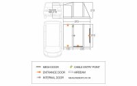 -Integrierte Ösen am Eingang um diesen mit Aufstellstangen (optional) als Sonnendach zu verwenden.