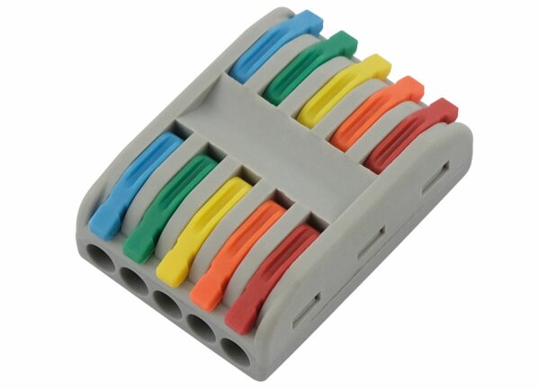 Beidseitig farbcodierte potential-getrennte Hebelklemmen zum einfachen Verlängern und Verzweigen von Leitungen. 0.14 - 4.0 mm2 / max. 32 A