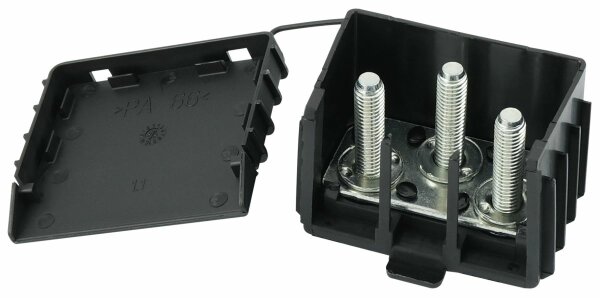 Anschluss: 3 x M8 U max: 42 V I max: 120 A 63.5 x 44.5 x 40 mm / 3 x M8