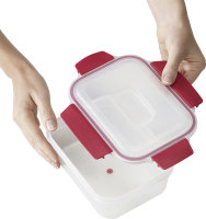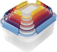 Dosen für die Essensaufbewahrung nehmen häufig viel Platz in den Küchenschränken ein und die Suche nach dem passenden Deckel für die Dose kann schnell zeit- und nervenaufreibend werden. Die Nest Lock Produktlinie von Joseph Joseph hat für dieses Problem die ultimative Lösung gefunden.  Aufgrund ihres einzigartigen Designs lassen sich die Dosen mitsamt passenden Deckeln ineinander stapeln, wodurch sie kaum Platz einnehmen. Weiterhin wird durch die Farbcodierungen an Dose und Deckel  die Zuuordnung zueinander ein Kinderspiel. Alle Produkte der Nest Lock Linie sind fest verschließbar,  luftdicht und auslaufsicher. Spülmaschinen - und Mikrowellengeeignet.