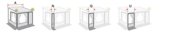 Durch das ZIP-System werden die Seitenteile mittels zweier robuster Reißverschlüsse mit dem Markisentuch verbunden, dadurch wird eine erhöhte Dichte gegen Wind und Wasser erreicht.