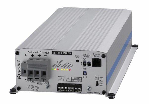 - Ladeprogramme Nr. 1, 2, 4 und Li (Gel, AGM, Säure, LiFePO4) auf Batterietyp einstellbar - Die Ladespannung ist frei von Spitzen und so geregelt, dass ein Überladen der Batterien ausgeschlossen ist. - Vollautomatischer Dauerbetrieb: Das Ladegerät kann ständig mit der Batterie verbunden sein und hält diese auf Vollladung. Bei Netzausfall werden die Batterien nicht entladen (Trennung durch Sicherheits‐Schalter). - Lithium LiFePO4‐ Maintenance, Auto Wake Up, Instandhaltungsphase: Regelmässiges automatisches Aktivieren des Batterie Zellen‐Balancings alle 10 Tage um durchgängig die volle Ladung der Batterie zu gewährleisten. - Blei‐Batterie‐Regenerierung bei langen Standzeiten zweimal wöchentlich gegen schädliche Säureschichtungen. - Parallel‐ und Puffer‐Betrieb: Bei gleichzeitigem Verbrauch wird die Batterie weiter geladen bzw. voll erhalten. Die Anpassung der Ladezeiten berechnet und überwacht das Ladegerät automatisch. - Überwachungsfreie Ladung: Mehrfacher Schutz gegen Überlast, Überhitzung, Überspannung, Kurzschluss, Verpolung, Fehlverhalten und Batterie‐Rückentladung durch elektronische Abregelung bis hin zur vollständigen Trennung von Ladegerät und Batterie durch eingebaute Sicherheits‐Schalter. - Anschluss für Batterie‐Temperatur‐Sensor (Zubehör Temperatur‐Sensor 825, Art.‐Nr. 2001): Bei Blei‐Batterien (Säure, Gel, AGM) erfolgt die automatische Anpassung der Ladespannung an die Batterie‐Temperatur, bewirkt bei Kälte eine bessere Vollladung der schwächeren Batterie, bei sommerlichen Temperaturen wird unnötige Batteriegasung und damit Batteriebelastung vermieden. Bei LiFePO4‐Batterien ist der Batterie Temperatur‐Sensor erforderlich für die Funktion: Er dient dem Batterieschutz bei hohen und insbesondere bei tiefen Temperaturen unter 0°C. - Silent Run‐Funktion: Auf Tastendruck geräuschoptimierte Arbeitsweise (Nachtbetrieb). - Netzteilfunktion: Ermöglicht die Versorgung der Verbraucher ohne Batterie (z. B. Batteriewechsel). - Ladekabel‐Kompensation: Spannungsverluste auf den Ladekabeln werden automatisch ausgeregelt. - Eingebautes Bordnetzfilter: Problemloser Parallelbetrieb mit Solaranlagen, Wind‐ und Benzingeneratoren, Lichtmaschinen etc. an einer Batterie. - Ladehilfe für tiefstentladene Blei‐Batterien: Schonendes vorladen der (Blei‐Säure, ‐Gel, ‐AGM) Batterie bis 8 V, dann kraftvolle Unterstützung der Batterie bei eventuell noch eingeschalteten Verbrauchern. - Trennung der Batterien bei Netzausfall, Überhitzung, Fehlverhalten (Sicherheitsschalter pro Ladeausgang) - Separater Neben-Ladeausgang „S“ zur Stütz- und Erhaltungs-Ladung der Fahrzeug-Starter-Batterie - Eingebauter Ladestromverteiler mit 2 Hauptladeausgängen, jeder mit max. Strom- und Leistungsvermögen - Ladesromverteiler wahlweise umschaltbar auf eigenes Ladeprogramm für Starterbatterie - Starterbatterie wird bei Bedarf auch mit vollem Ladestrom geladen (kurze Fahrzeug-Standzeit) - Batterie-Kapazität 4-fach einstellbar (insgesamt 12 Ladeprogramme) - Eingänge für Spannungsfühler-(Sense-)Leitungen, wahlweise nutzbar bei überlangen Ladeleitungen und/oder externen, verlustbehafteten Dioden-Ladestromverteilern - Netz-/Ladeleistung reduzierbar bei leistungsschwacher oder eingeschränkter Netzversorgung, z.B. schwach abgesicherte Landstromversorgung, Generatorbetrieb etc. (Power-Limit-Funktion) 330 x 139 x 74 mm