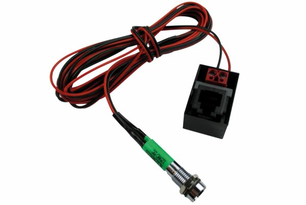 Verwendbar wie Charger State Monitor IP67, jedoch mit einfarbig grüner Leuchtdiode, welche die Betriebsbereitschaft des Ladegerätes und der Netz-/Strom-Versorgung anzeigt. Gleiche Montagemöglichkeiten, jedoch mit 8 mm-Bohrung und Dichtring für Fronteinbau mit hoher Dichtigkeit IP67. Der Anschluss und die Anschlussmöglichkeiten sind gleich dem Charger State Monitor IP67. Lieferumfang: 0.4 m lange Anschlusslitzen rot/schwarz, Anschlussadapter, Anschlusskabel 5 m lang, beidseitig steckfertig für Geräteanschluss, Dichtring, Überwurfmutter,