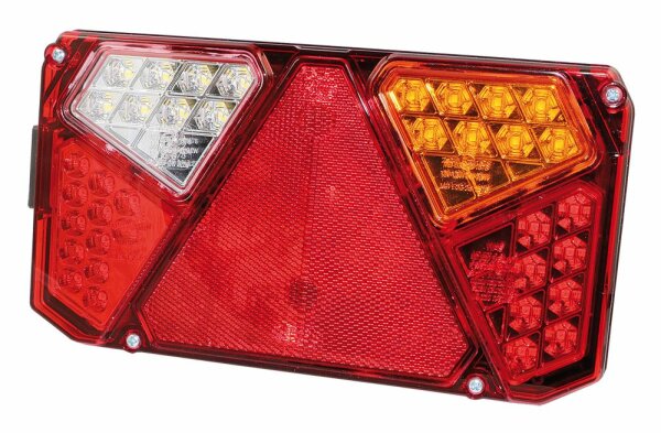- droite - IP56 - avec feux de recul, anti brouillard et éclairage de plaques - avec catadioptre triangulaire - autres versions disponibles sur demande 242x134mm, IP56, avec FR, FB e EP