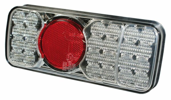 Rechts, farbloses Glas! mit Rückfahrleuchte weiss: Masse schwarz: Schlusslicht/Kennzeichenlicht rot: Stop gelb: Blinker blau: Rückfahrlicht oder Nebelschlusslicht 200.5x85x40mm, mit RFL, farbloses Glas