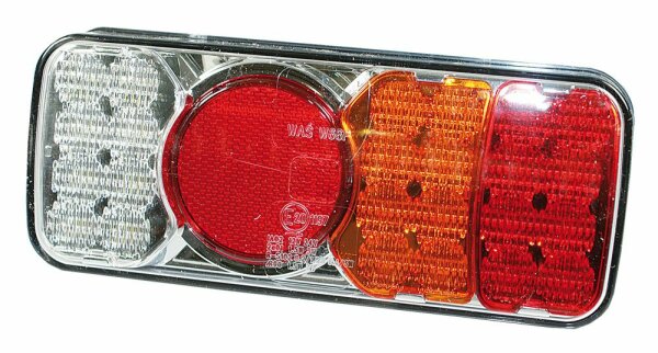 Mit Rückfahrleuchte, weiss: Masse schwarz: Schlusslicht rot: Stop gelb: Blinker blau: Rückfahrlicht 200.5x85x40mm, mit RFL