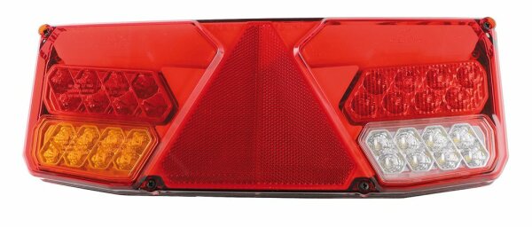 - links - 12V, Voll-LED - integrierter Widerstand auf Blinker mit Blinkerausfallkontrolle - integrierter Widerstand auf Bremse (ohne Ausfallkontrolle) - mit Dreieckrückstrahler - mit Rückfahr- und Nebelschlusslicht - IP56 - weitere Versionen auf Anfrage erhältlich 350x131mm, links mit RFL und NSL