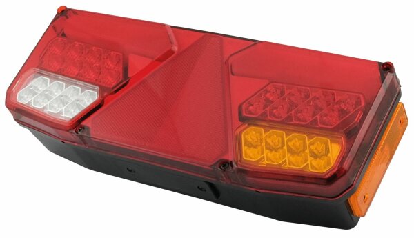 - rechts - Voll-LED - mit Dreieckrückstrahler - mit Rückfahr-, Nebelschluss- und Seitenmarkierleuchte - IP56 - weitere Versionen auf Anfrage erhältlich 350 x 131 mm, rechts mit RFL, NSL und SML