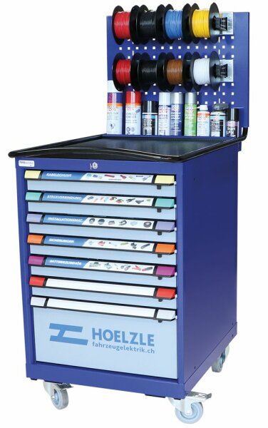 - über 7‘300 der meistgebrauchten Elektroteile - Profi-Werkstattboy von Thurmetall - stabiler Rollensatz mit Feststellbremse - Zentralverriegelung gegen Diebstahl - garantierte Zeitersparnis - 100% Schwerlastauszug -Nutzmasse Boy: B: 500 mm T: 600 mm H: 700 mm - Nutzmasse Schubladen: B: 500 mm T: 600 mm Bitte verlangen Sie den Spezialprospekt per Post oder öffnen Sie den Informationsflyer. Komplett bestückt mit 8'000 Artikeln
