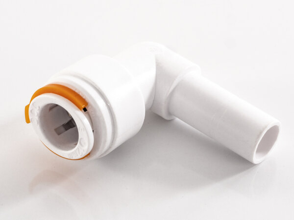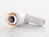 Winkelsteckanschluss 90° für Ø 12 mm Stecksystem auf Ø 12 mm Rohr.