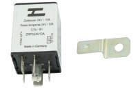 Relaisform: Zeitrelais Relaisform: Zeitrelais Schaltfunktion: Wechsler / Öffner Schaltfunktion: Schliesser Spannung: 24 V Spannung: 24 V Leistung Arbeitskontakt: 10 Ampère Leistung Arbeitskontakt: 10 Ampère Leistung Ruhekontakt: 10 Ampère Leistung Ruhekontakt: 0 Ampère Leistung maximal: 10 Ampère Halter: Ja Halter: Ja Parallelwiderstand: Nein Parallelwiderstand: Nein Löschdiode: Nein Löschdiode: Nein Sicherung: Nein Sicherung: Nein Anschluss 30 seitlich: Nein Anschluss 30 seitlich: Nein Dauerstrom: Ja Dauerstrom: Ja Wasserdicht: Nein Wasserdicht: Nein Zusatzinformation: Multifunktional: Anzugsverzögerung oder Abfallverzögerung mit Poti und Schalter von 0,5 Sekunden bis 6 Stunden einstellbar / Typ B / IP 54/ mit Halter 2=87z, 3=30, 4=15, 5=87a, 6=31, 8=87 Bei Abschaltverzögerung gilt die eingestellte Zeit ab Unterbrechung des Steuerungssignals (Dauersignal oder Impuls). Z.B. wenn die eingestellte Zeit 20 Sek. beträgt und der Impuls 5 Sek. dauert, dann ist die Gesamtzeit 25 Sek. Bei Einschaltverzögerung muss der Steuerungsimpuls dauernd anliegen! Die Schaltung erfolgt von 87z nach 87. Zusatzinformation: Abfallverzögerung mit Poti und Schalter von 0,5 - 4000 Sekunden einstellbar, Typ D / IP 54/ mit Halter Bei Abschaltverzögerung gilt die eingestellte Zeit ab Unterbrechung des Steuerungssignals (Dauersignal oder Impuls). Z.B. wenn die eingestellte Zeit 20 Sek. beträgt und der Impuls 5 Sek. dauert, dann ist die Gesamtzeit 25 Sek. Ein- oder Ausschaltverzögerung 0.5s - 6h, IP54