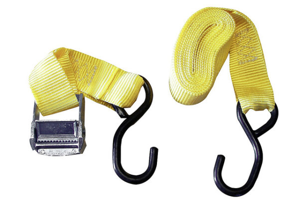 Zurrgurt zweiteilig mit Klemmschloss und S-Haken.