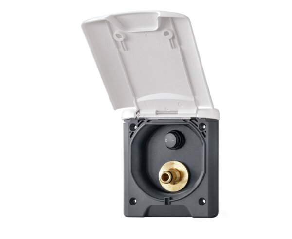 Prise de gaz en gris clair Dimensions : 130 x 145 mm, montage Ø 95 mm