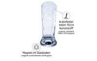 Die formschönen, edlen und hochwertigen Kunststoffgläser beherbergen perfekt integrierte Magneten im Glasboden und sind in den Varianten Wein, Champagner, Bier, Longdrink sowie Whisky erhältlich.